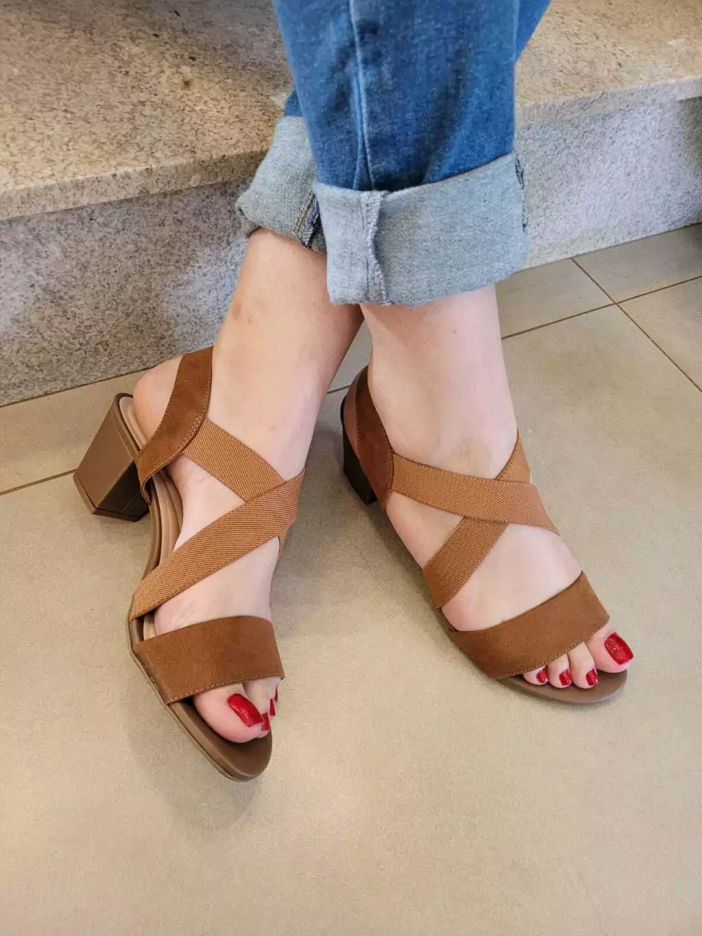 Salto Bloco de 5 cm: Proporciona a altura ideal para um toque de sofisticação, mantendo o conforto que você precisa para o dia a dia.